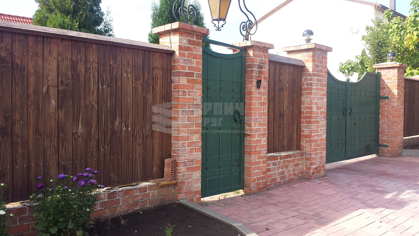 Красивый дом и забор из кирпича